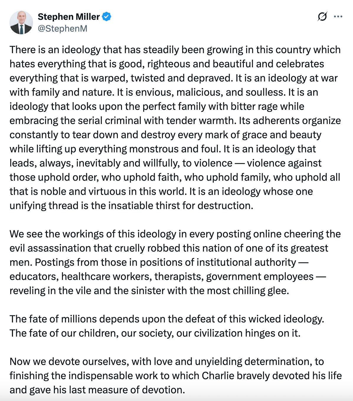 Then there was this lengthy reflection from Stephen Miller, arguably Trump’s most influential aide and the architect of his domestic policy: