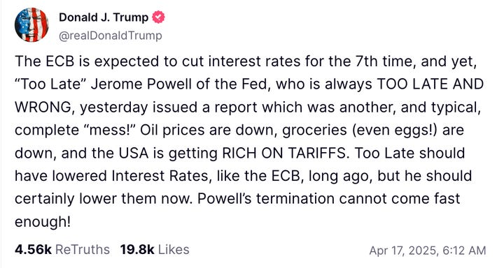 If Trump were to get his way and fire Powell, the result would likely be disastrous. Financial markets - which are already losing faith in the U.S. dollar and treasuries - would take a deep hit. Over the longer term, the move would raise the specter of Trump dictating monetary policy from the Oval Office - something sure to lead the economy to ruin. It might be the final straw that destroys U.S. financial hegemony once and for all.